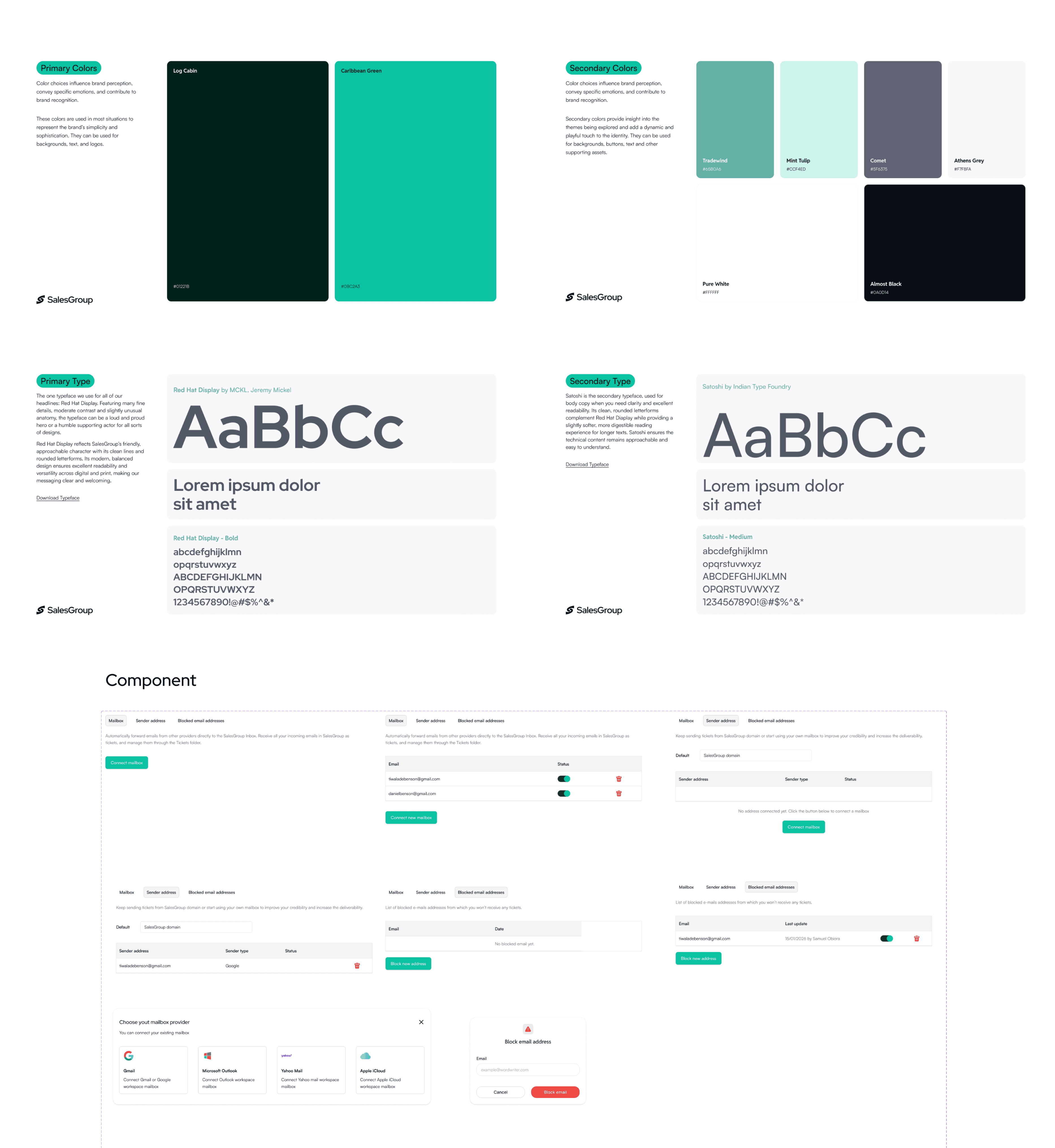 After defining the visual direction, I used ChadCN as the framework to build and brand SalesGroup’s design system.