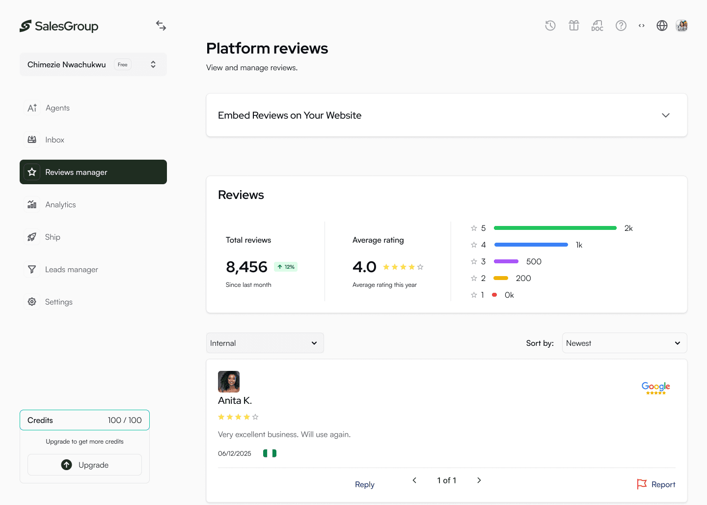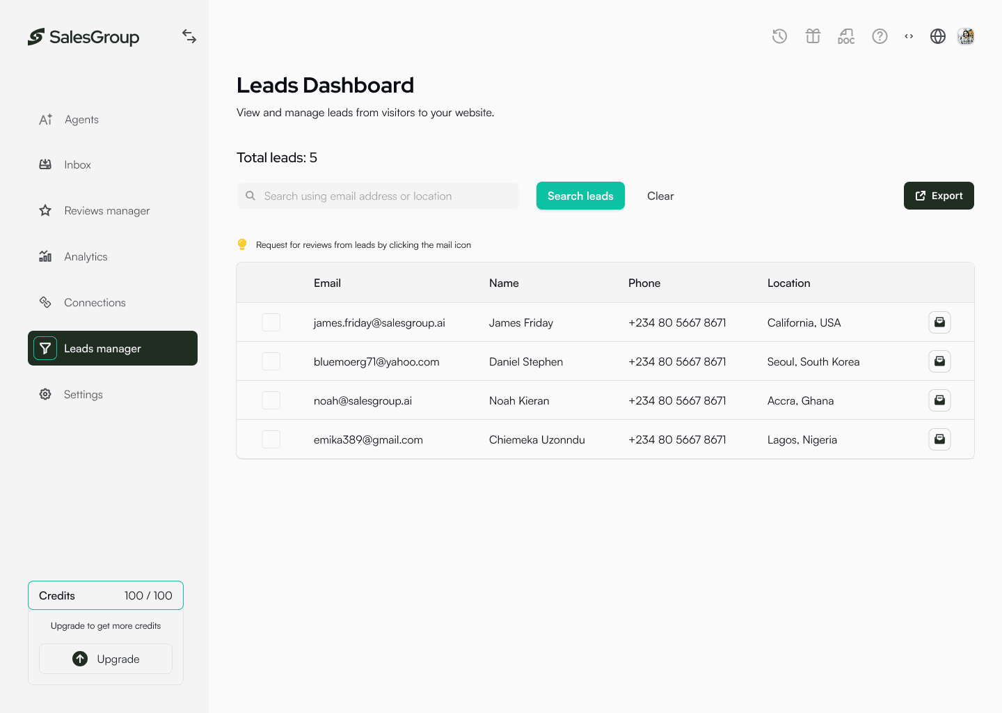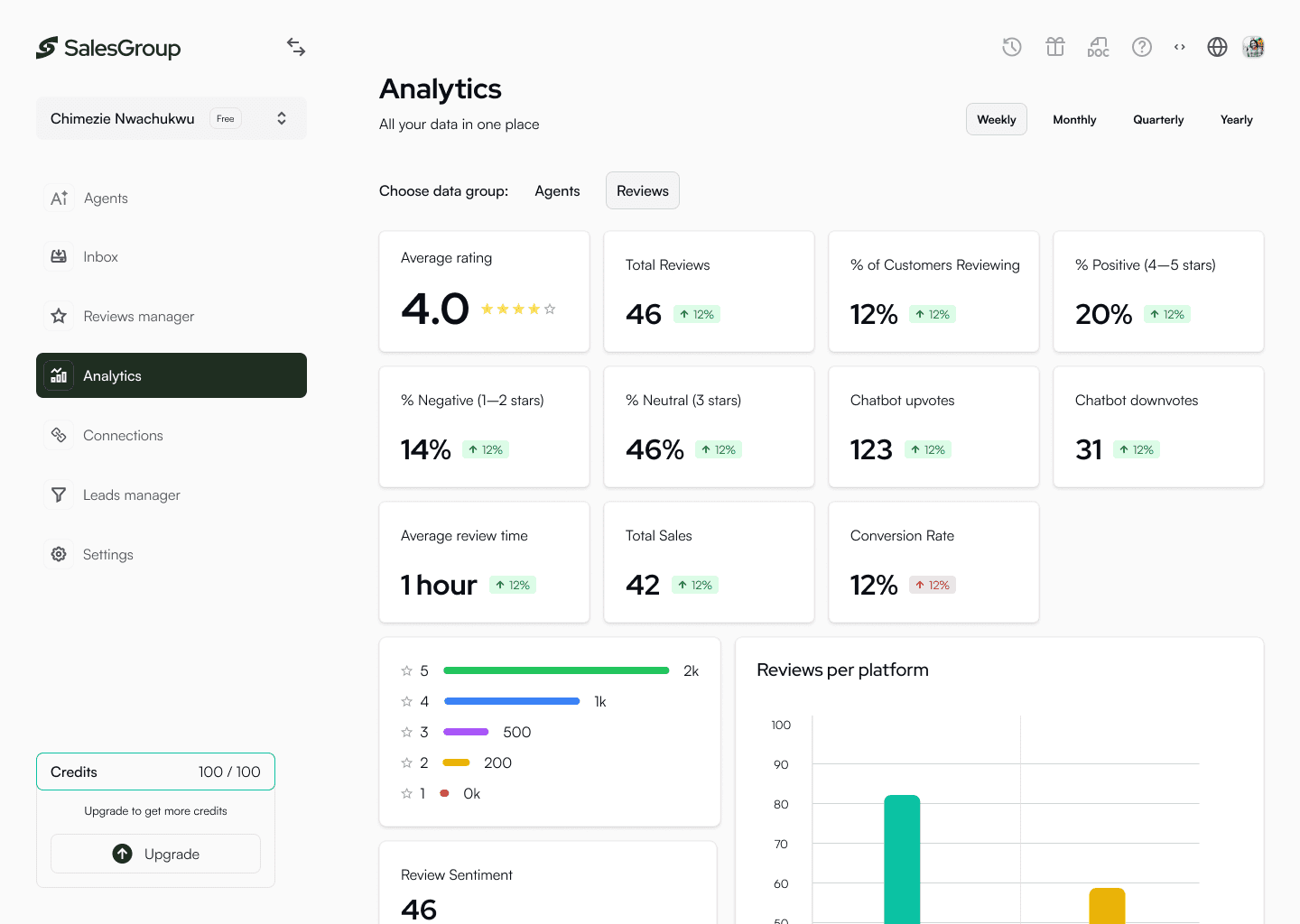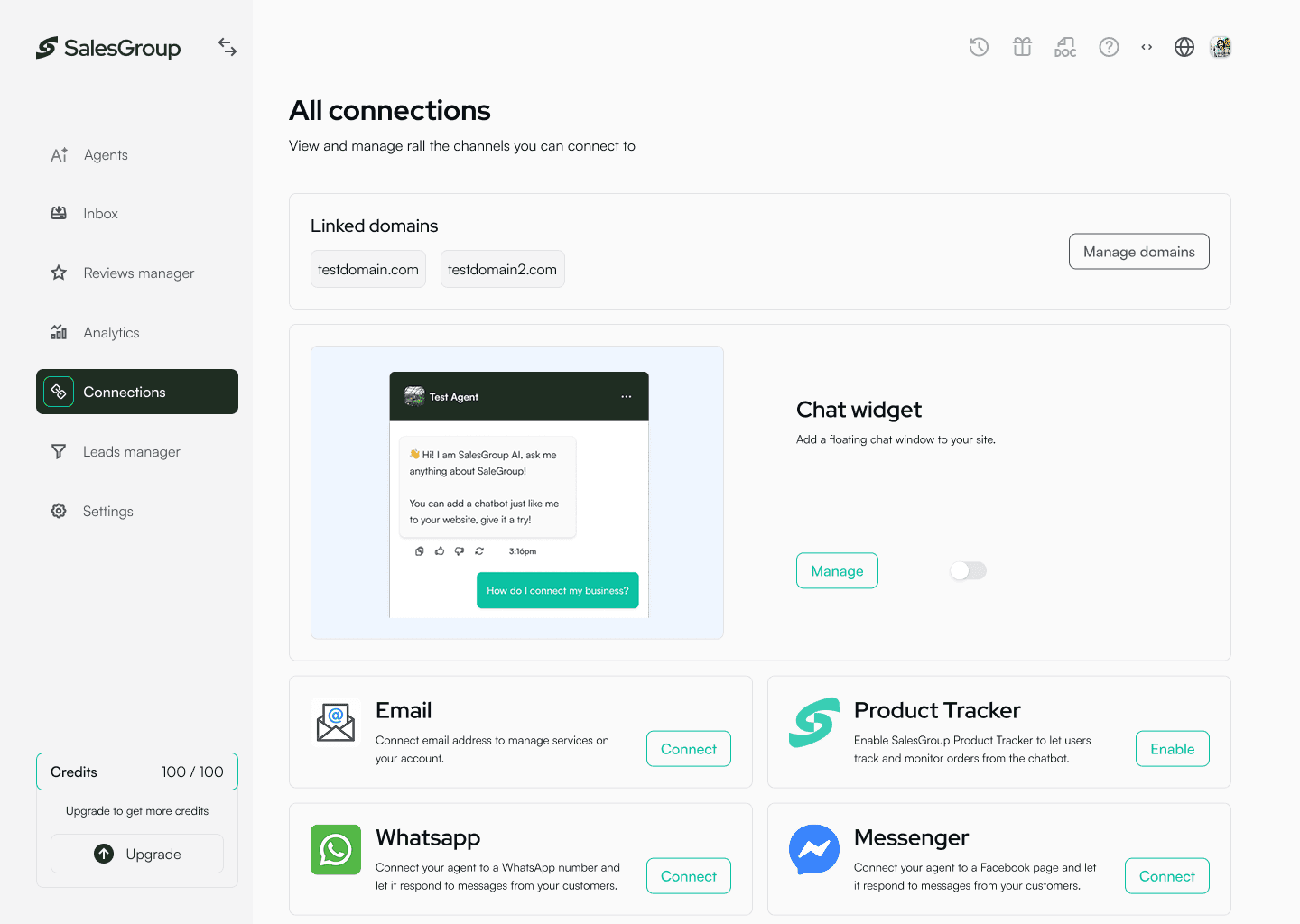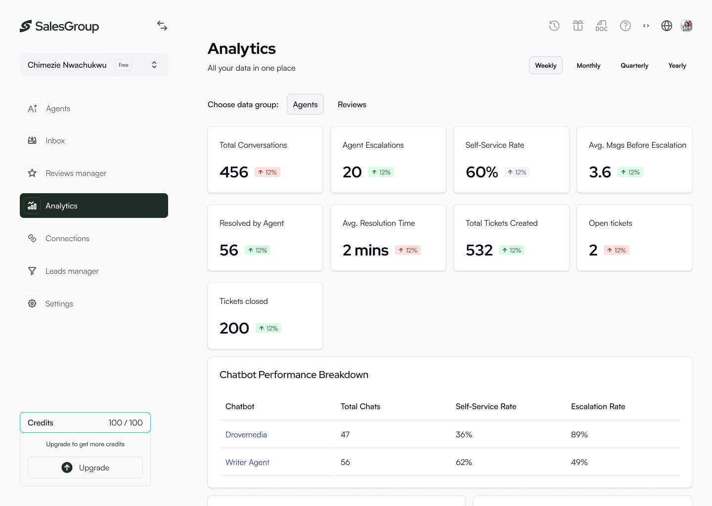 SalesGroup is an AI powered customer support platform that automates conversations while giving teams full visibility and control over customer interactions.
