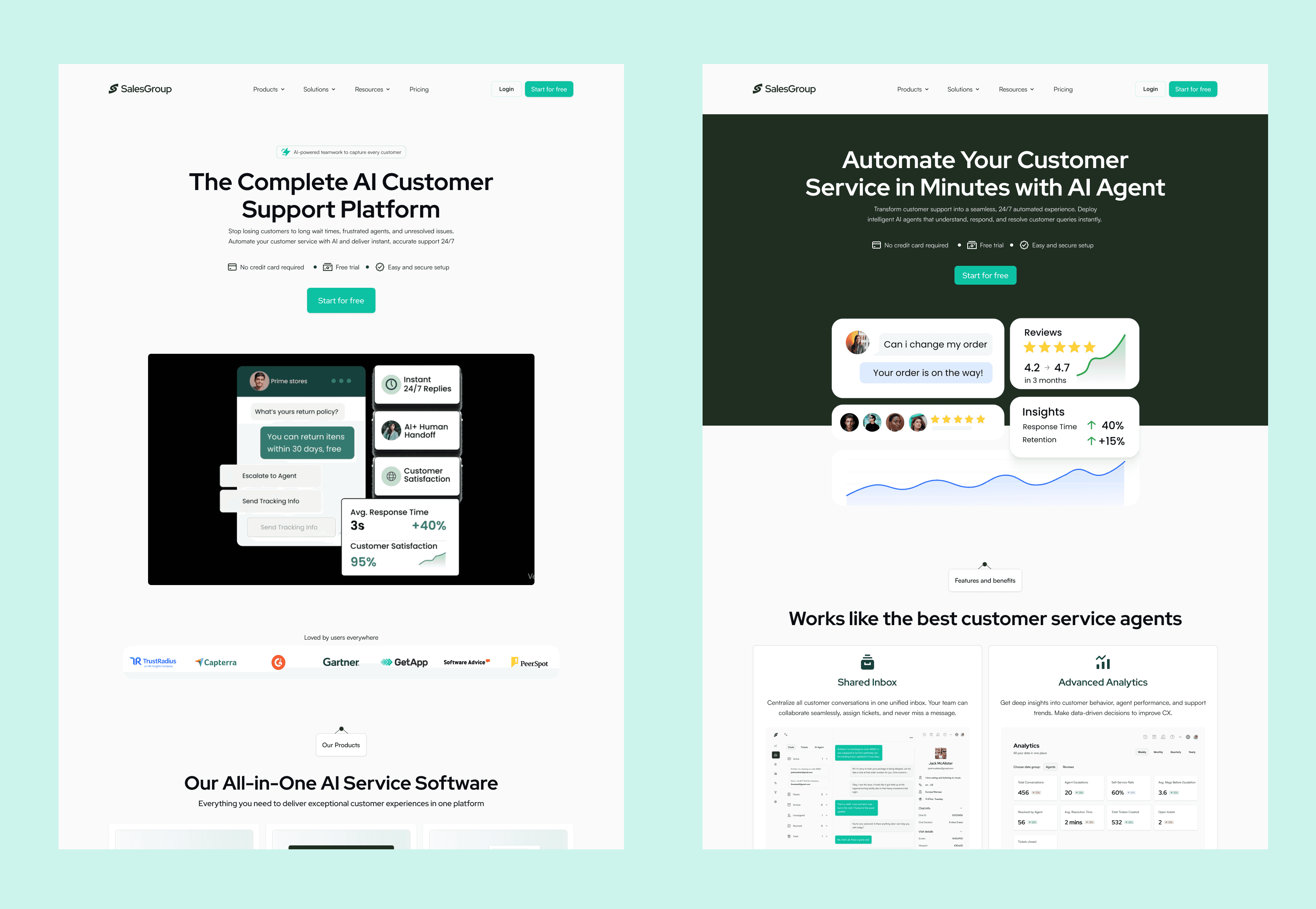 I designed SalesGroup’s landing pages to clearly communicate the product’s value, guide users through key features, and drive conversions.
